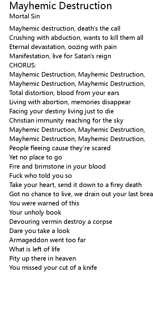 Mayhemic Destruction, Mayhemic Destruction, |
