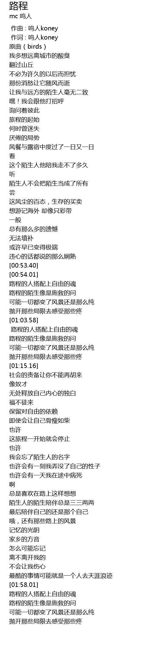 | [00:54.67] | 路程的人搭配上自由的魂 |