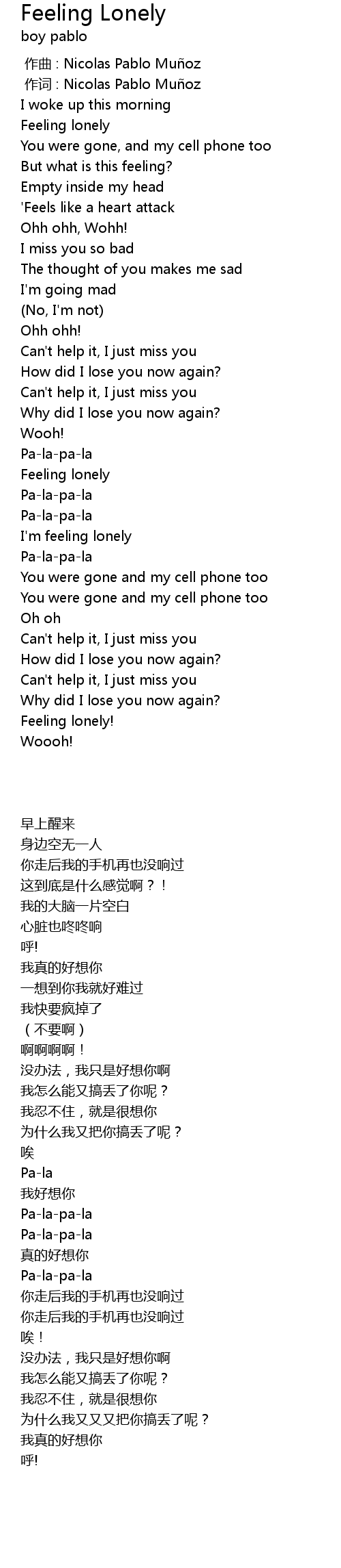 | [00:29.93] | Feeling lonely |
