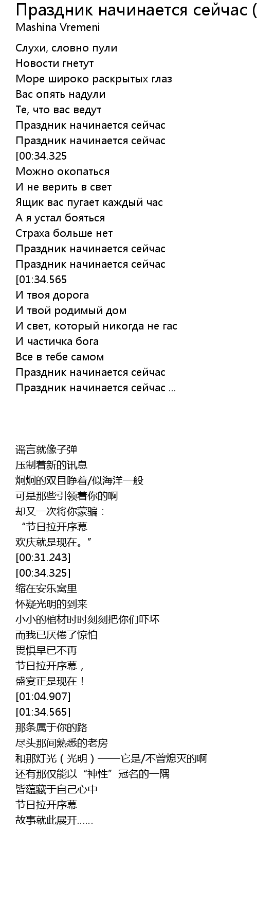 | 歌曲 | Праздник начинается сейчас (Андрей Макаревич) |