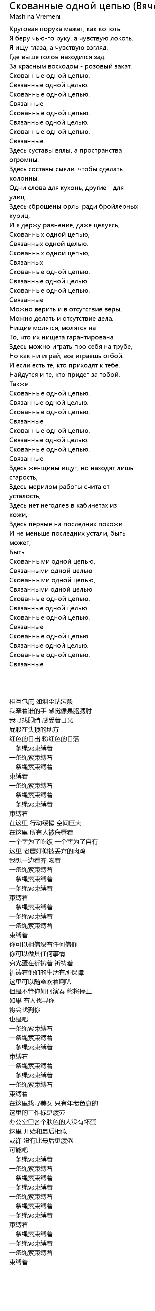 | 歌曲 | Скованные одной цепью (Вячеслав Бутусов — Илья Кормильцев) |