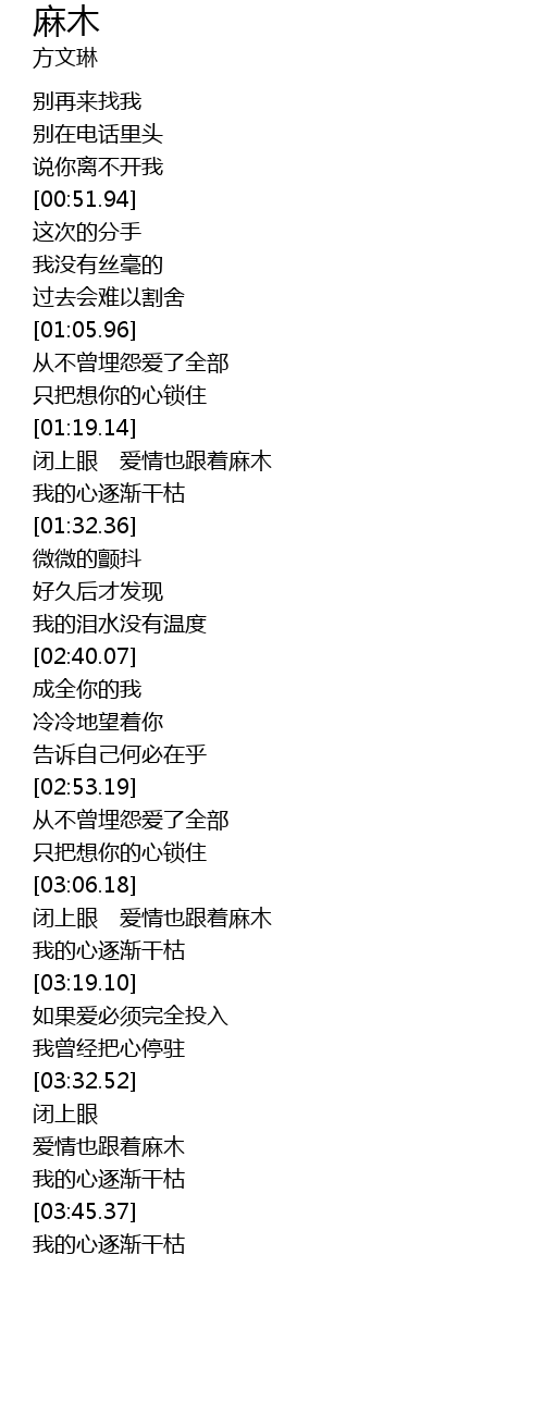 | [03:36.61] | 爱情也跟着麻木 |