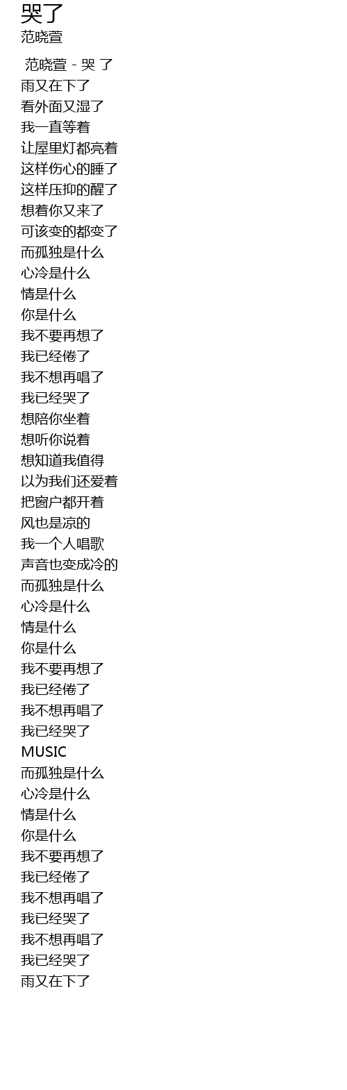 | [00:01.080] | 范晓萱 - 哭 了 |