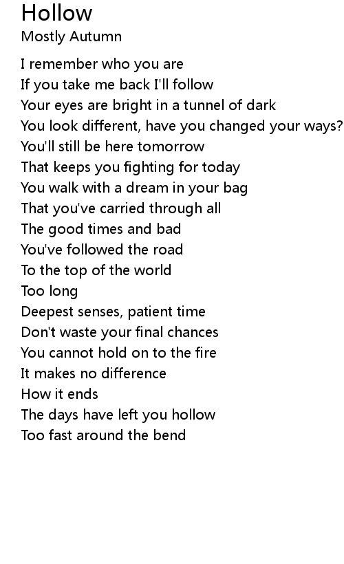 The days have left you hollow |