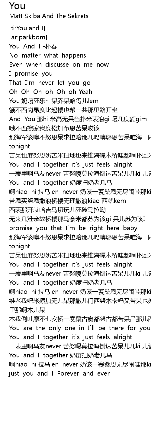 | [02:34.620] | You and I together 奶度扫奶老几马 |
