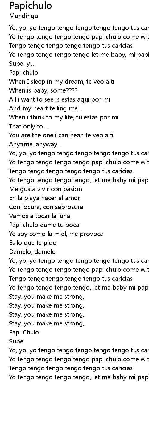 | Yo tengo tengo tengo tengo papi chulo come with me | |