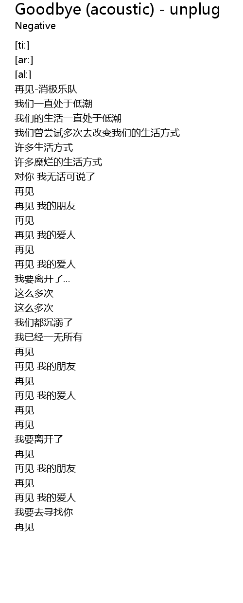 | [00:05.37] | 再见-消极乐队 |
