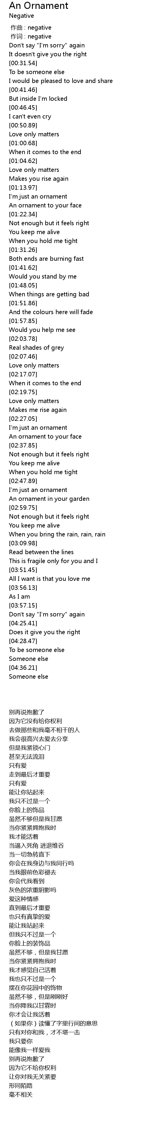 | [04:19.86] | Don' t say " I' m sorry" again |