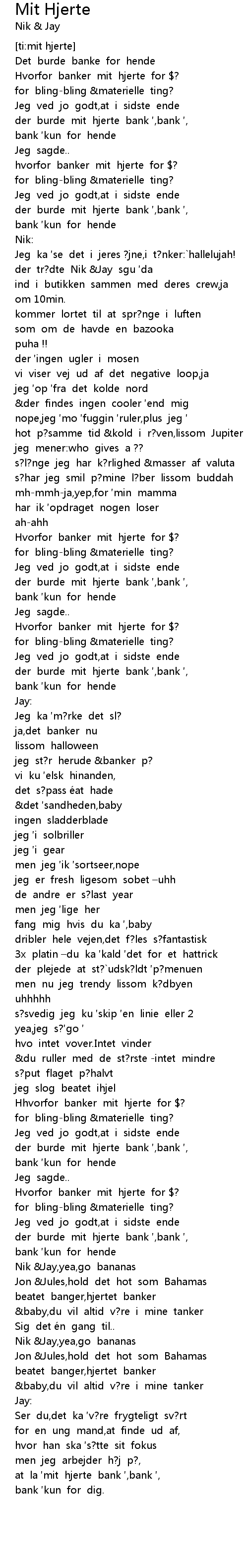 | [00:21.446] | hvorfor banker mit hjerte for $? |