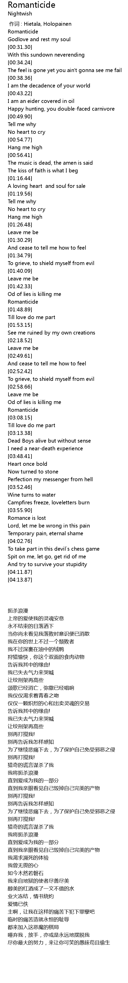 | [00:00.00] | zuo ci : Hietala, Holopainen |