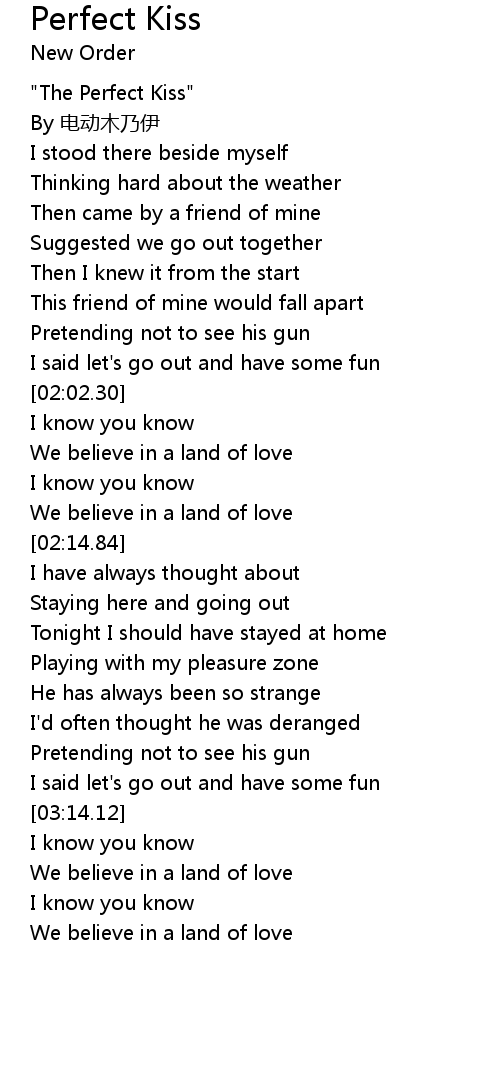 | [00:15.62] | " The Perfect Kiss" |
