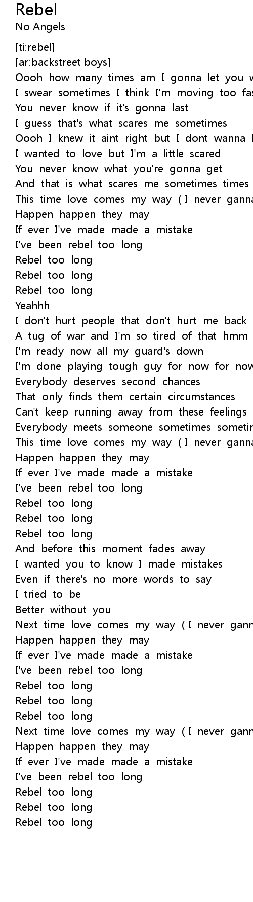 | [01:11.432] | I've been rebel too long |