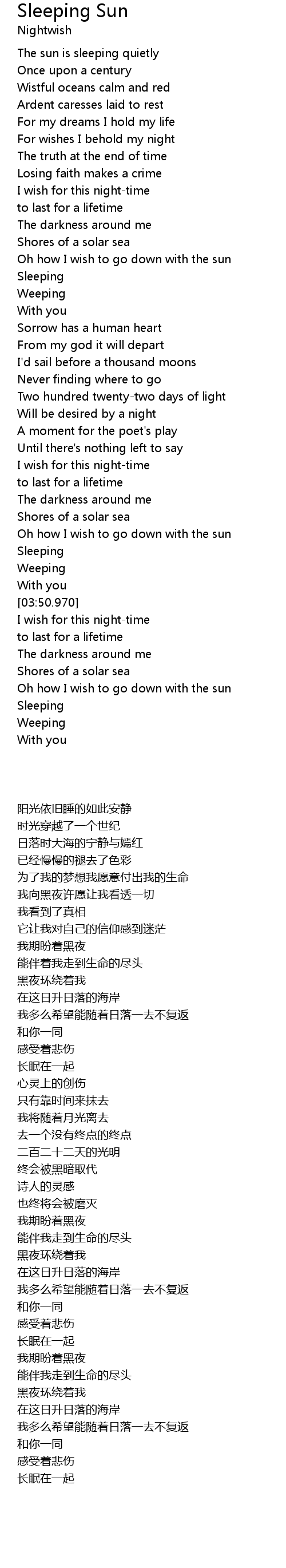 | [04:22.950] | Oh how I wish to go down with the sun |
