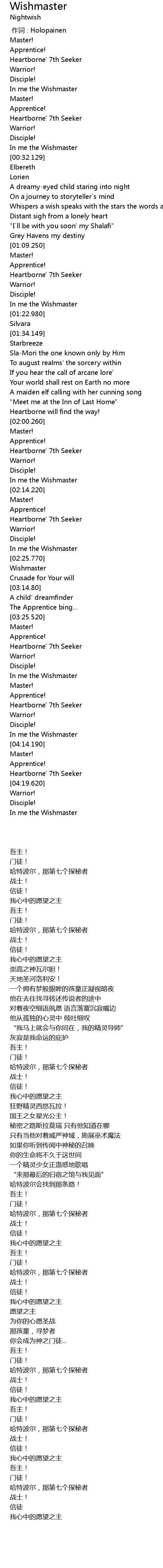 | [01:02.830] | “我马上就会与你同在,我的精灵导师” |