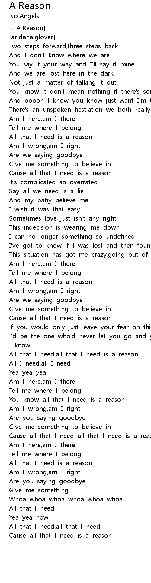 | [03:21.262] | Cause all that I need all that I need is a reason |