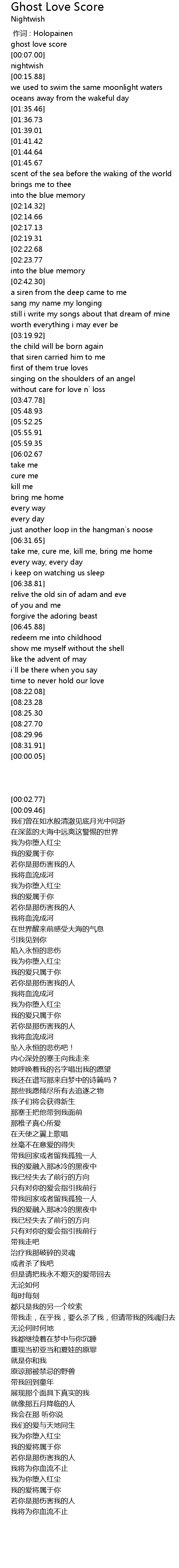 | [00:00.00] | 作词 : Holopainen |