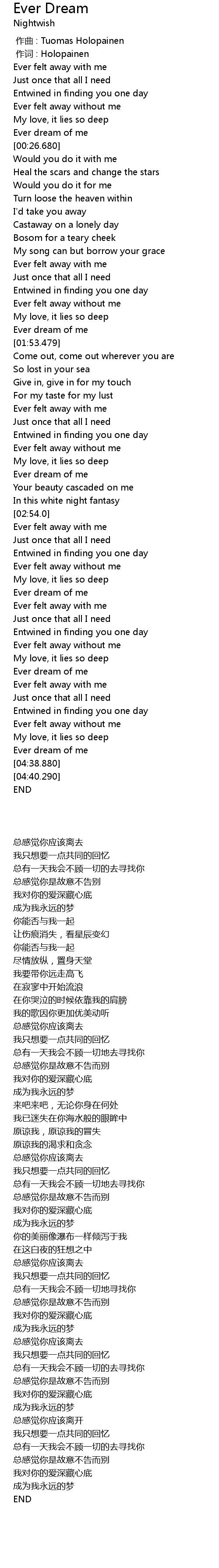 | [00:00.00] | 作曲 : Tuomas Holopainen |