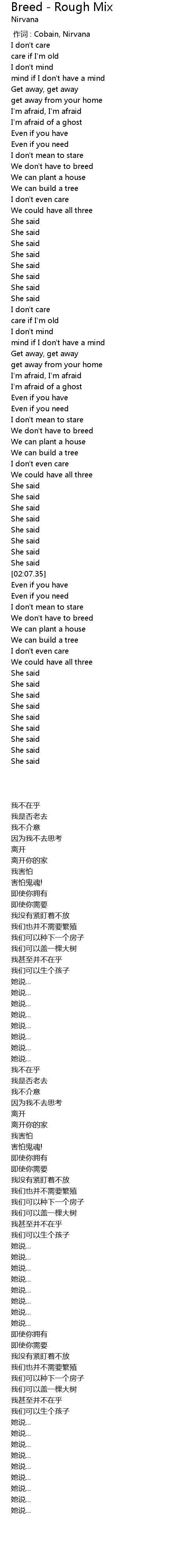 | [00:00.00] | 作词 : Cobain, Nirvana |