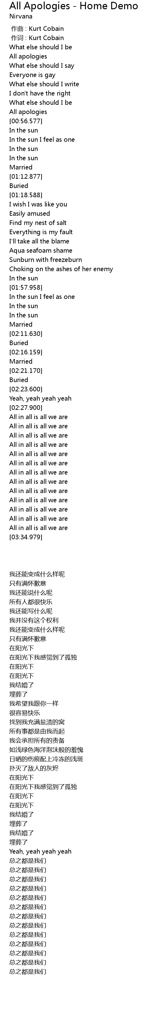 | 歌曲 | All Apologies - Home Demo |