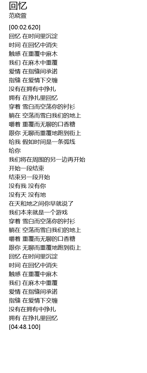 | [00:04.480] | 回忆 在时间里沉淀 |