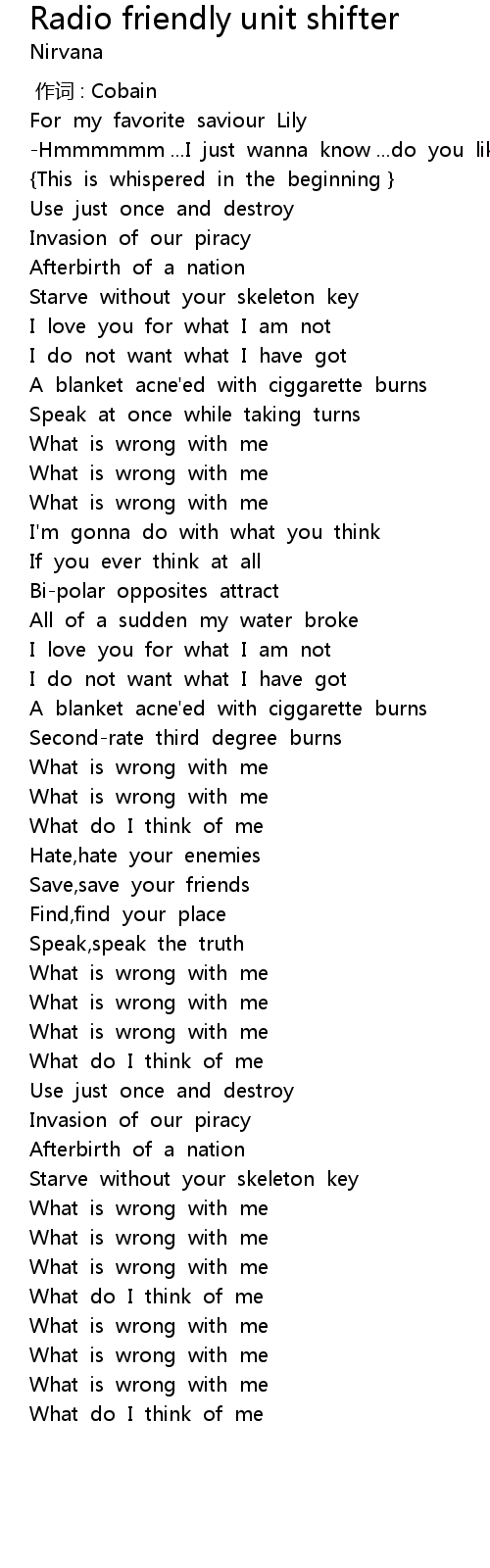 | 歌曲 | Radio friendly unit shifter |
