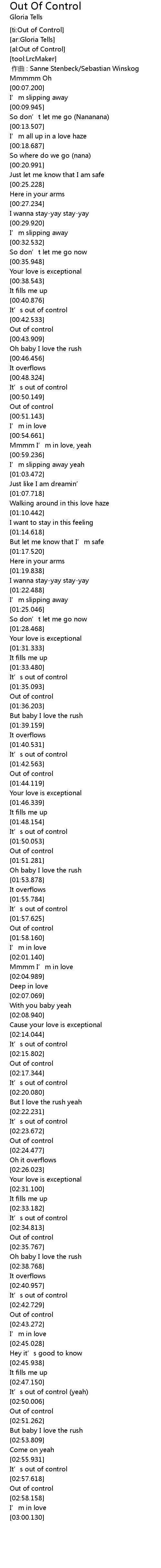 | [02:35.168] | Out of control |