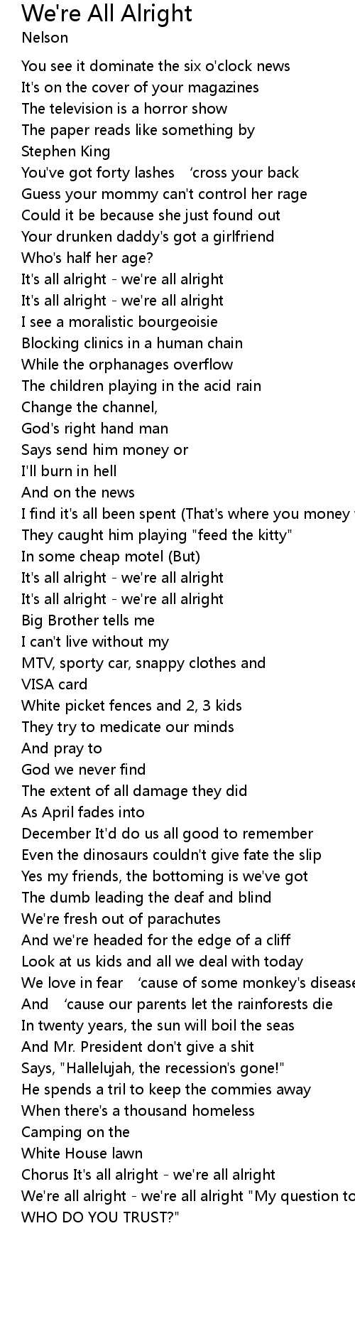 | Chorus It's all alright - we're all alright | |