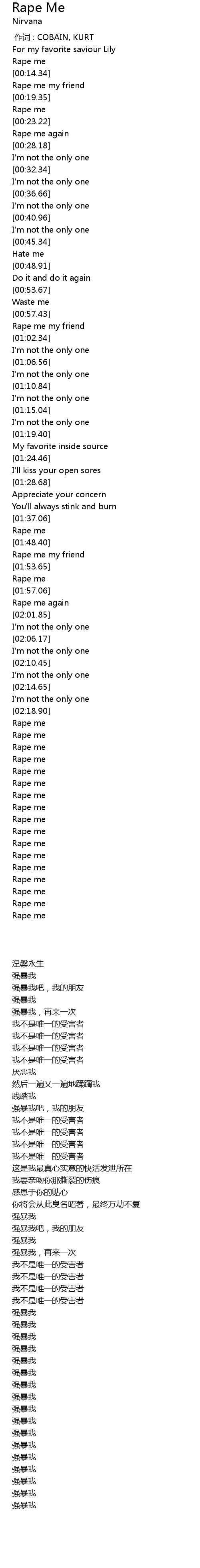 | [01:58.77] | Rape me again |
