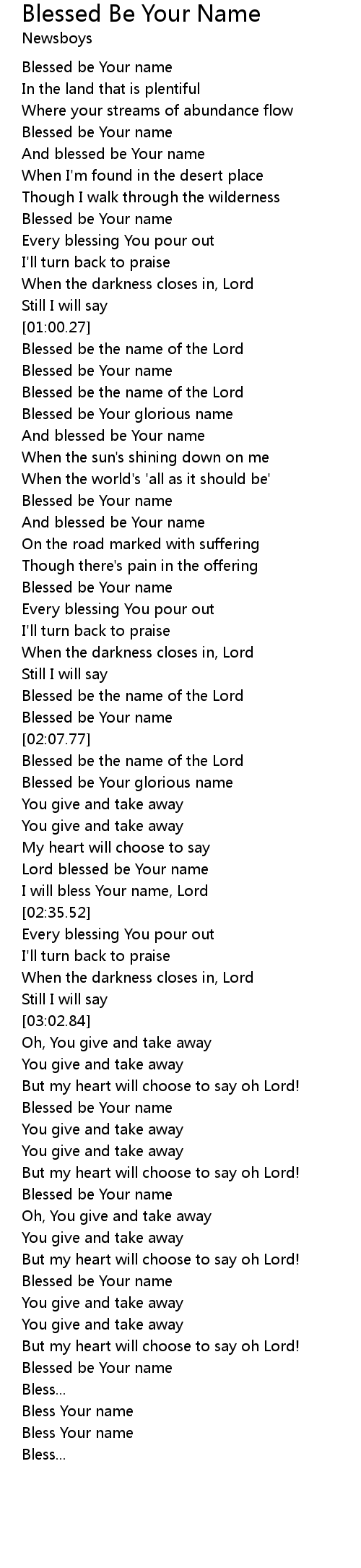 Blessed be Your name |
