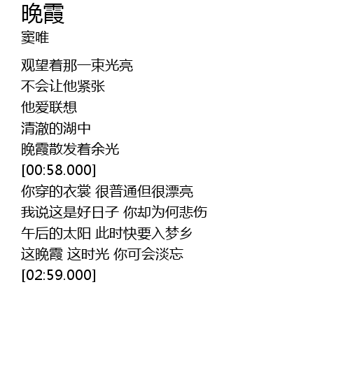 | [00:50.000] | 晚霞散发着余光 |