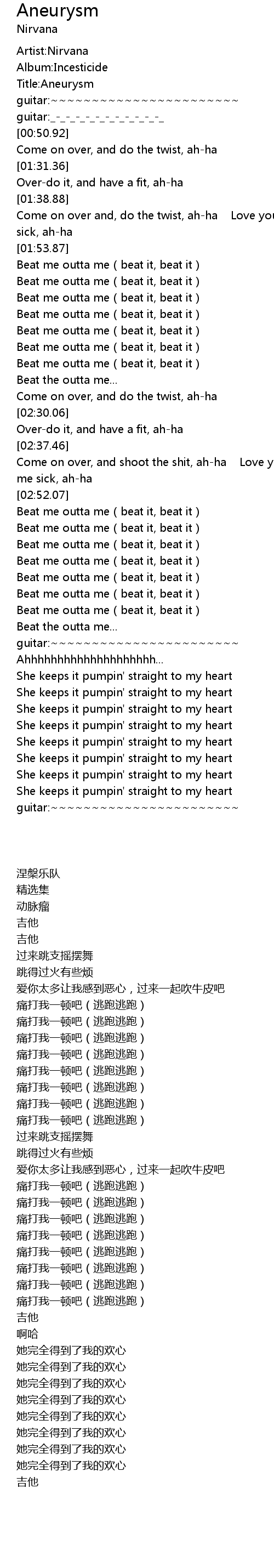 | 歌曲 | Aneurysm |