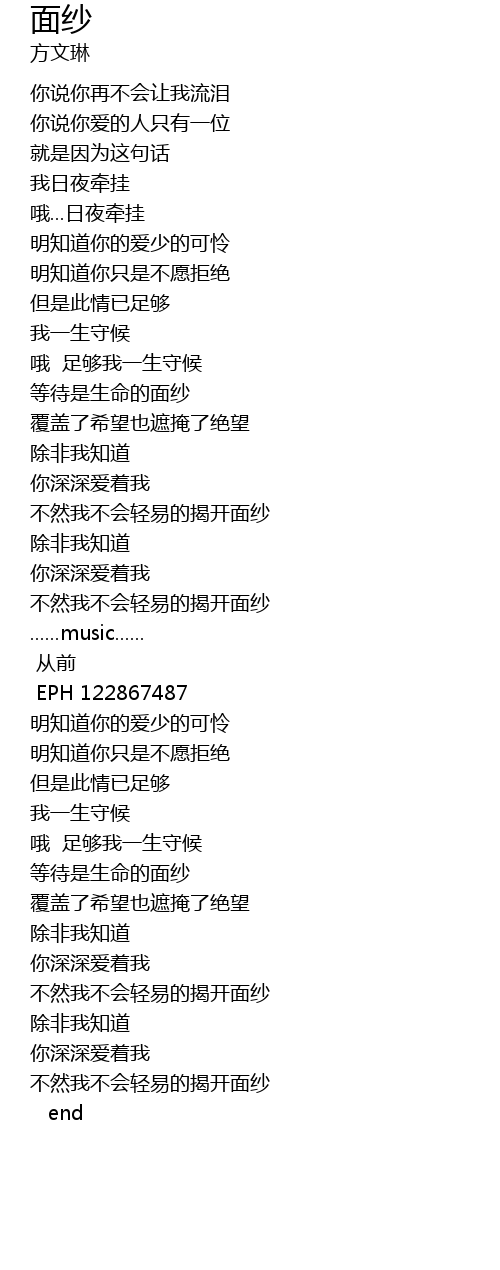 | [03:28.00] | 不然我不会轻易的揭开面纱 |