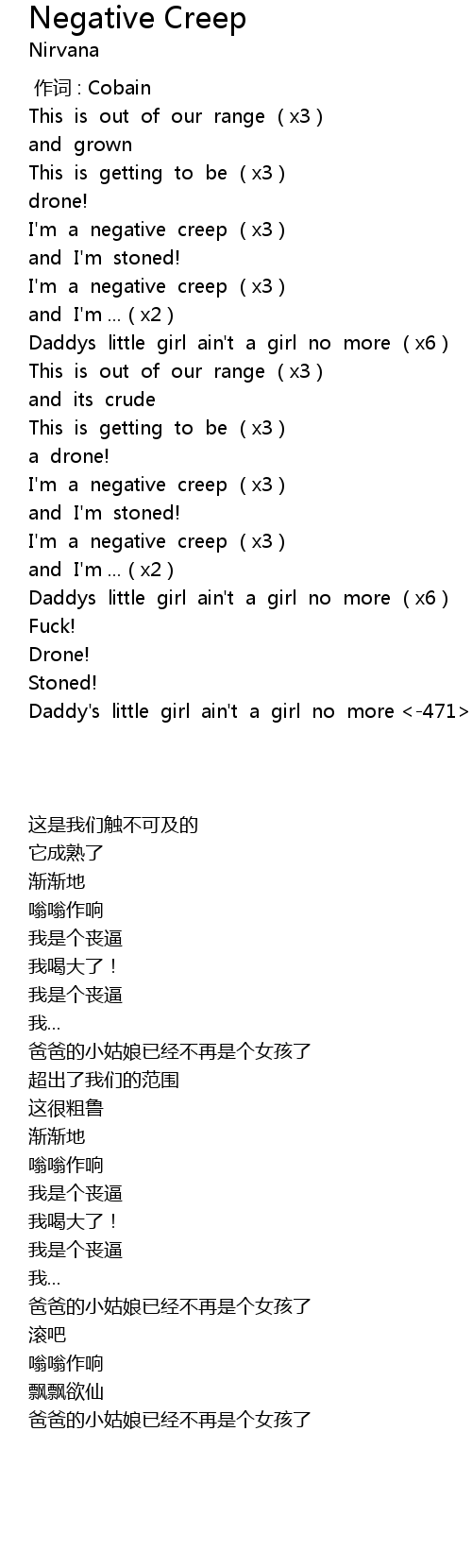 | [00:32.94] | I' m a negative creep x3 |
