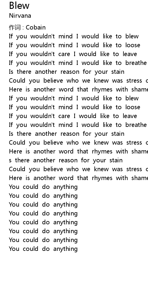 | 作词 : Cobain | |