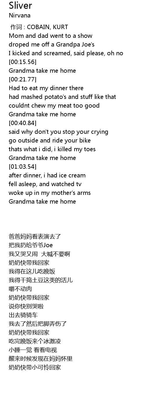 | [01:25.83] | 奶奶快带小可怜回家 |