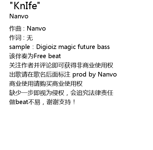 | 出歌请在歌名后面标注 prod by Nanvo | |