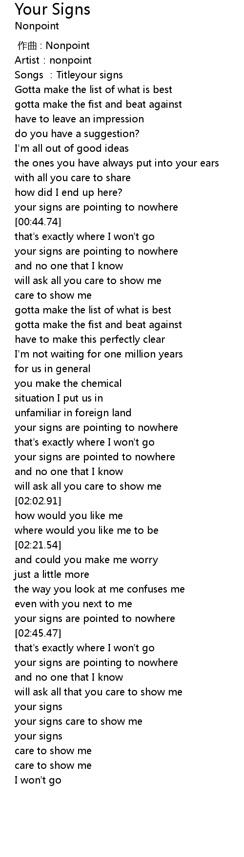 | [00:00.00] | zuò qǔ : Nonpoint |