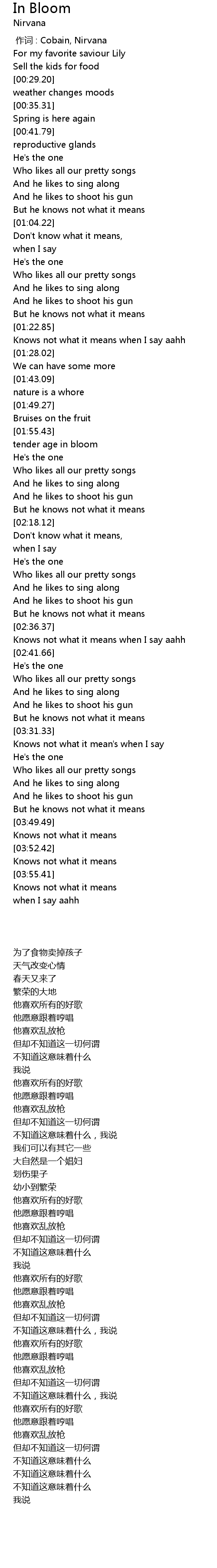 | [00:00.00] | 作词 : Cobain, Nirvana |