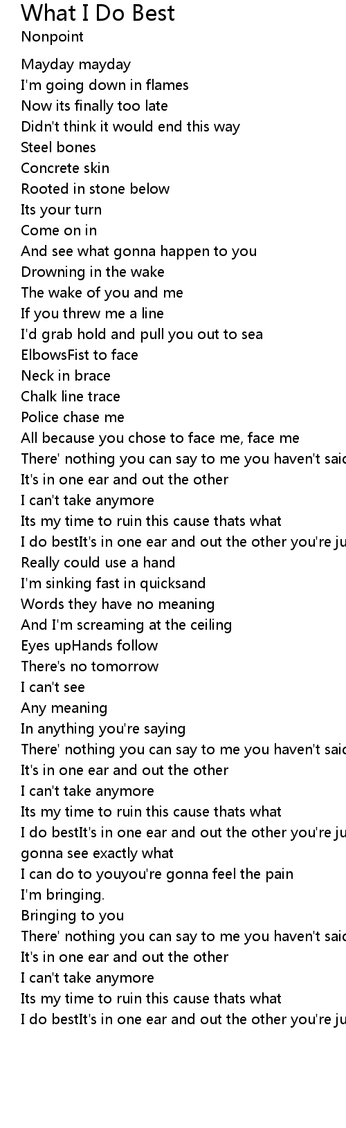| I do bestIt's in one ear and out the other you're just like all the rest |