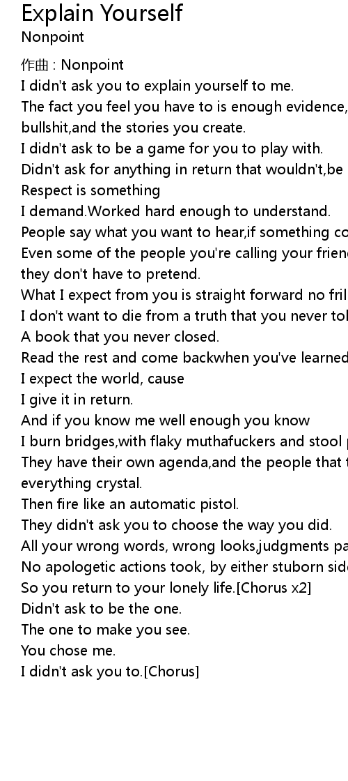 | Chorus I didn' t ask you to explain yourself to me. | |