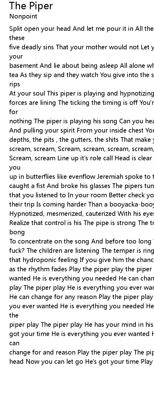 | piper play The piper play He has your mind in his head Now you can let go He's | |