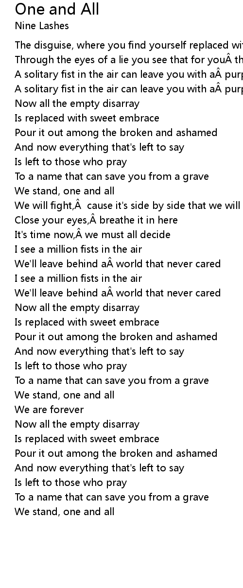 | We stand, one and all | |
