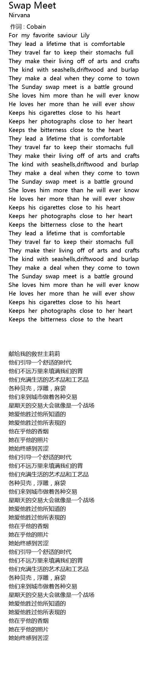 | [00:00.97] | 献给我的救世主莉莉 |