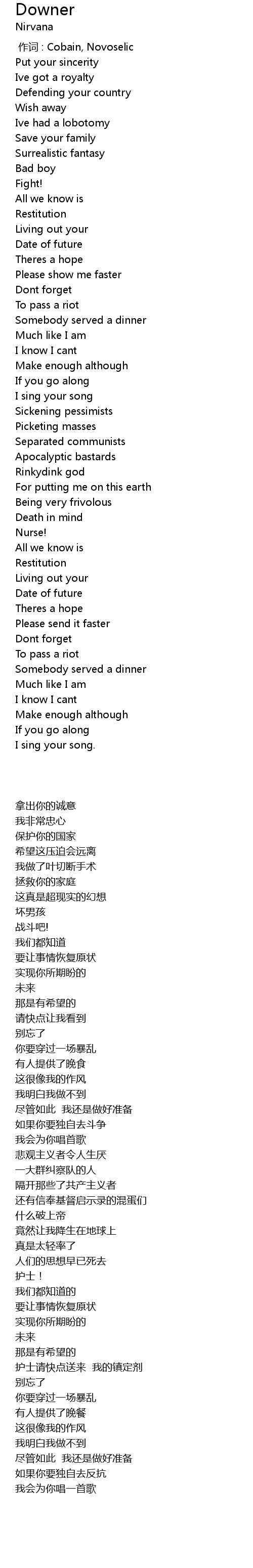 | [00:00.00] | zuò cí : Cobain, Novoselic |