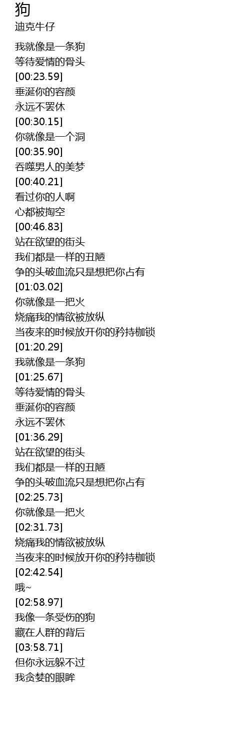 | [01:22.37] | 我就像是一条狗 |