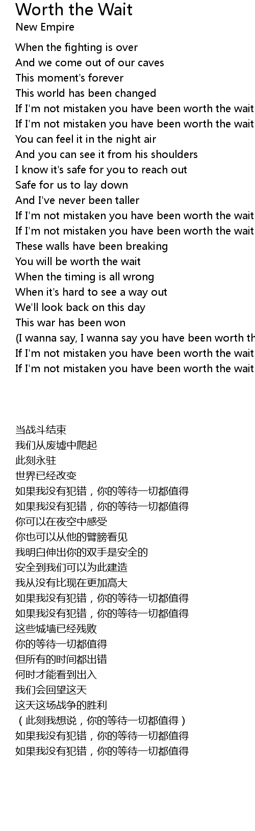 If I'm not mistaken you have been worth the wait |