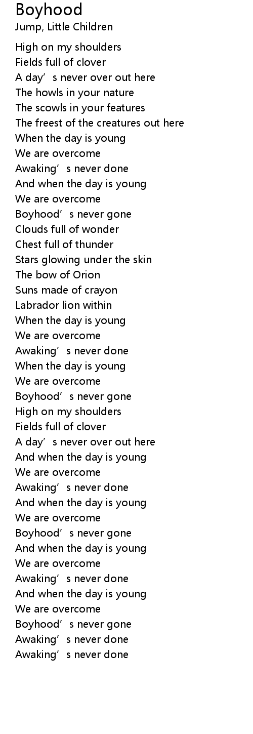 | [00:54.41] | Boyhood' s never gone |