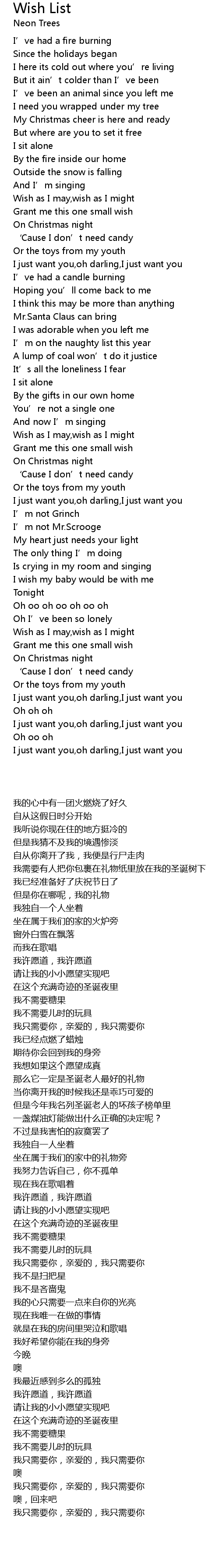 | 歌曲 | Wish List |