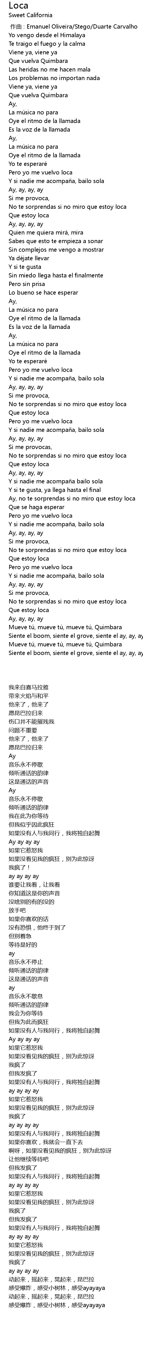 | [03:02.29] | Mueve tú, mueve tú, mueve tú, Quimbara |