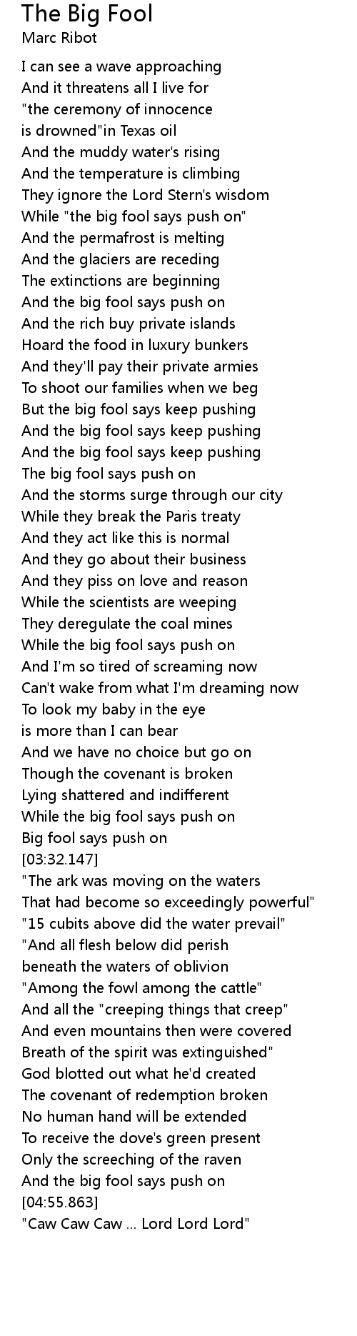 While "the big fool says push on" |